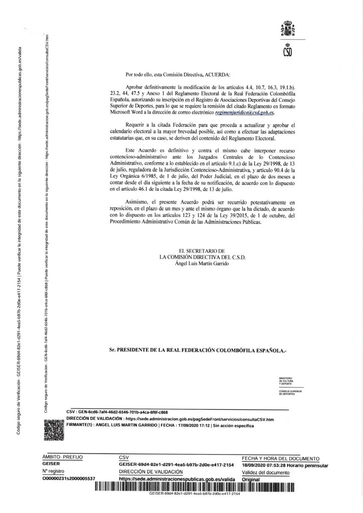 APROBACIÓN REGLAMENTO ELECTORAL CSD 18.09.2020