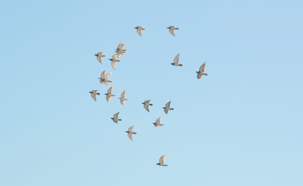 En los vuelos rutinarios en los medios urbanos de ciudades y pueblos, las palomas aprenden a sortear obstáculos entre edificios, cableado eléctrico y antenas y a reconocer depredadores esquivando en lo posible cualquier ataque de rapaces ya adaptadas al medio urbano.