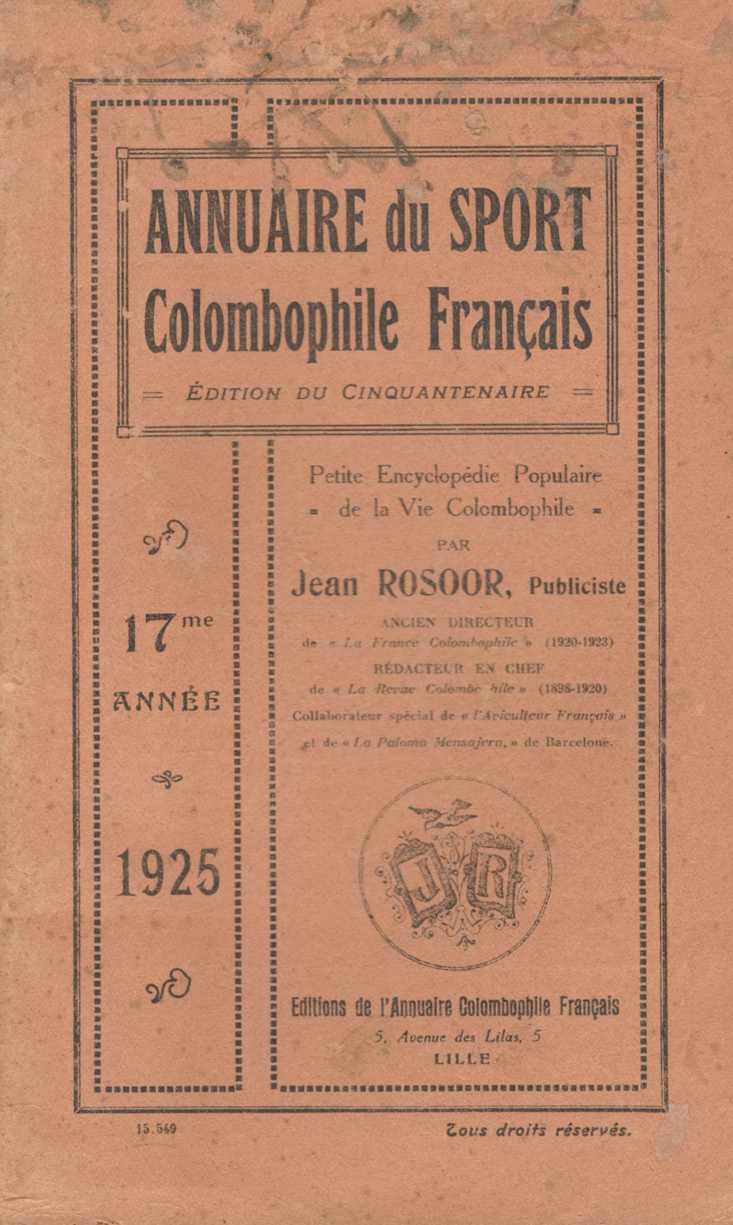 Título: Annuaire du sport colombophile français. Contiene dibujos y escritos en blanco y negro.