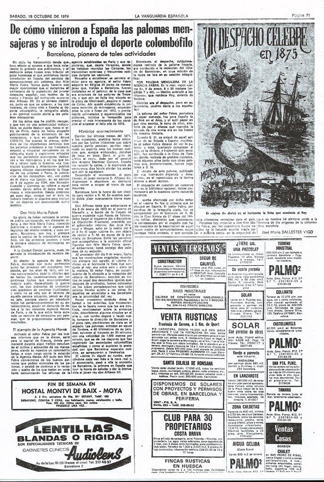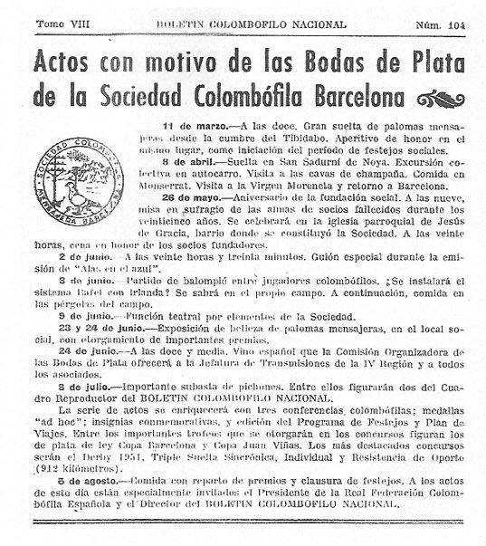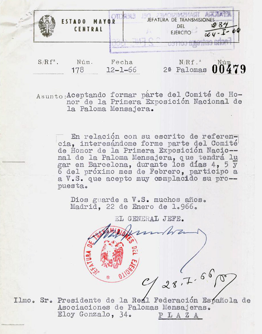 Dentro de las colaboraciones se encontraba la celebración de una Exposición Nacional de la Paloma Mensajera, hecho que sucedió con posterioridad celebrándose la XXI Exposición Nacional de la Paloma Mensajera en el Parque Cultural Viera y Clavijo de Santa Cruz de Tenerife, los días; 16, 17 y 18 de enero de 1987, con la edición además de un matasellos conmemorativo gracias a la iniciativa del Grupo Filatélico y Numismático de la Isla. El contenido de esta reunión lo publiqué en el espacio Rincón del Colombófilo, que por ese entonces llevaba en el periódico local El Día, el 26 de marzo de 1986.