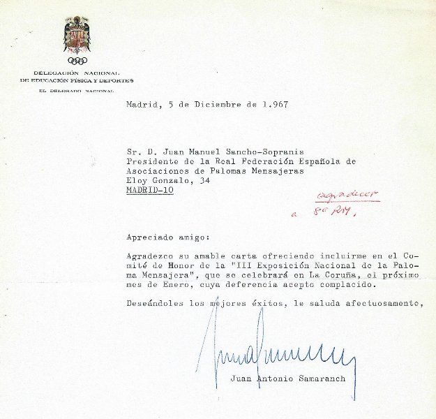Como consecuencia de celebrarse el Congreso Internacional de la Federación Colombófila Internacional en Katowice, Polonia, los días 27, 28 y 29 de enero de 1989, donde tuvo lugar la última Olimpiada Colombófila de ese entonces, se tomó el acuerdo sometido a votación entre las Federaciones Nacionales, de los países miembros de la FCI, de adjudicar a España la celebración de la XXIII Olimpiada Colombófila prevista para el año 1993. Muchas Federaciones nacionales votaron a favor de España en perjuicio de la otra candidatura presentada por los Países Bajos, obteniendo España una victoria en sus votaciones de 16 a 10. Consecuente con ello, la directiva de la Real Federación Colombófila Española presidida por Carlos Márquez Prats, remitió circulares a todas las Federaciones Territoriales con la solicitud de que presentasen candidaturas para realizar esta cita internacional, siendo la fecha tope para recepcionar los proyectos, el 30 de junio de 1989, permitiendo que la asamblea nacional se defina en su reunión a celebrar en Valencia en enero de 1990, con motivo de la cita de la Exposición Nacional de La Paloma Mensajera. Ese mismo año de 1989, la Institución nacional puso en marcha la celebración de un Derby Nacional, aprobado el día 6 de febrero, en asamblea general nacional celebrada en el recinto de La Feria Internacional de Muestras de Asturias. Este Derby nacía con aspiraciones de celebrarse anualmente con tres palomas designadas en nido por cada colombófilo participante, facilitando la RFCE., las anillas especiales y comenzó a celebrarse a partir de 1990, su desarrollo iba parejo a las competiciones sociales y nacionales desarrolladas en todos los Clubes de España. Todas estas noticias sobre tan interesantes proyectos las publiqué en el periódico El Día, el 18 de abril de 1989.